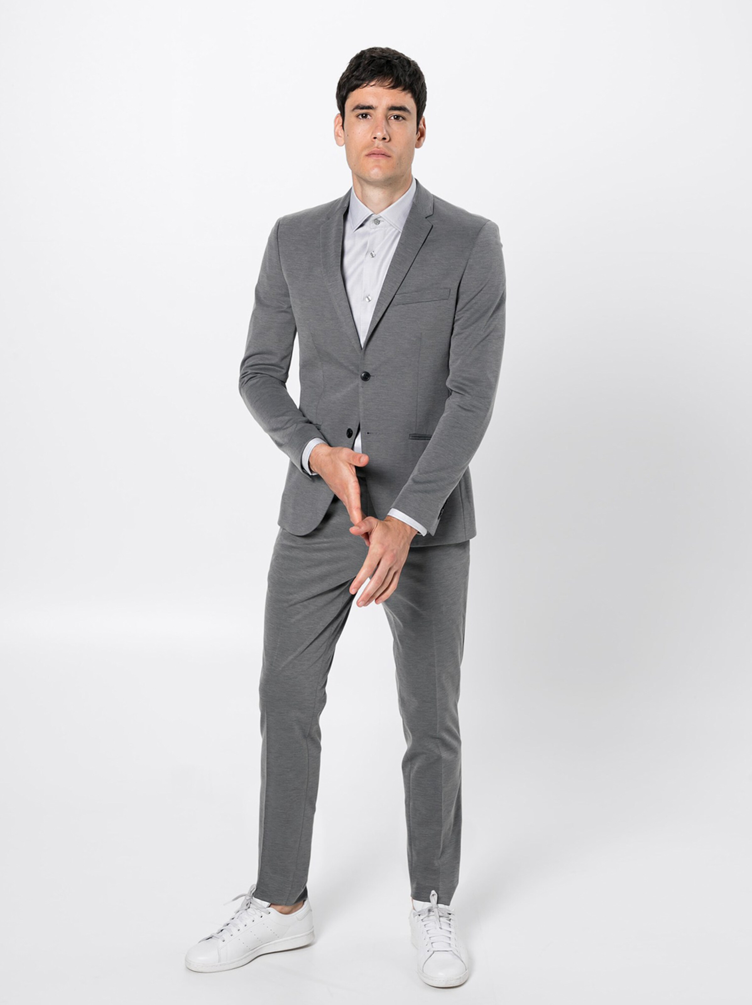 Perfekt für besondere Anlässe oder smarte Business-Looks: Der Anzug. Mindestens einer davon sollte im Kleiderschrank jedes Mannes hängen. Ob lässig gestylt als Sakko zu Jeans und Sneakern oder elegant mit Hemd und Krawatte - Nicht ohne Grund liegt James Bond die Frauenwelt zu Füßen.