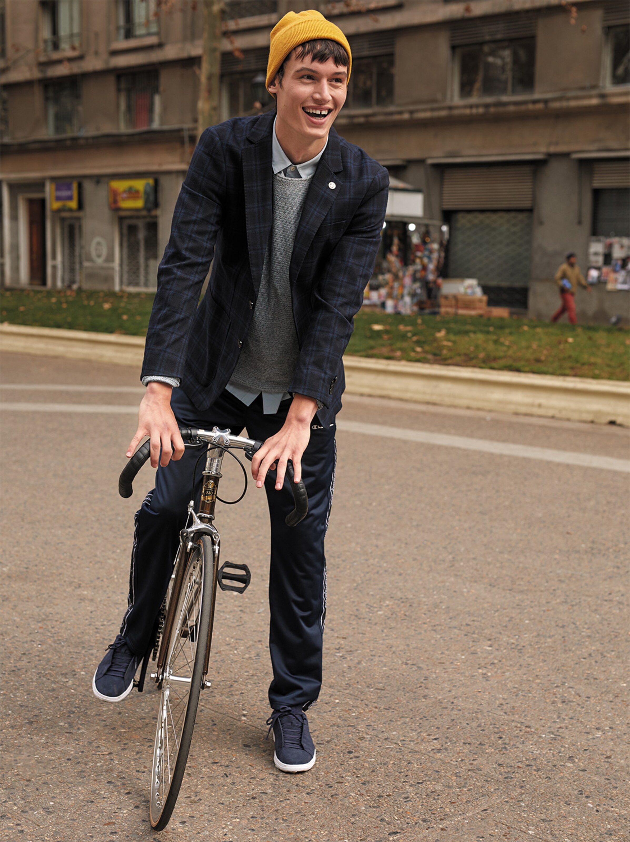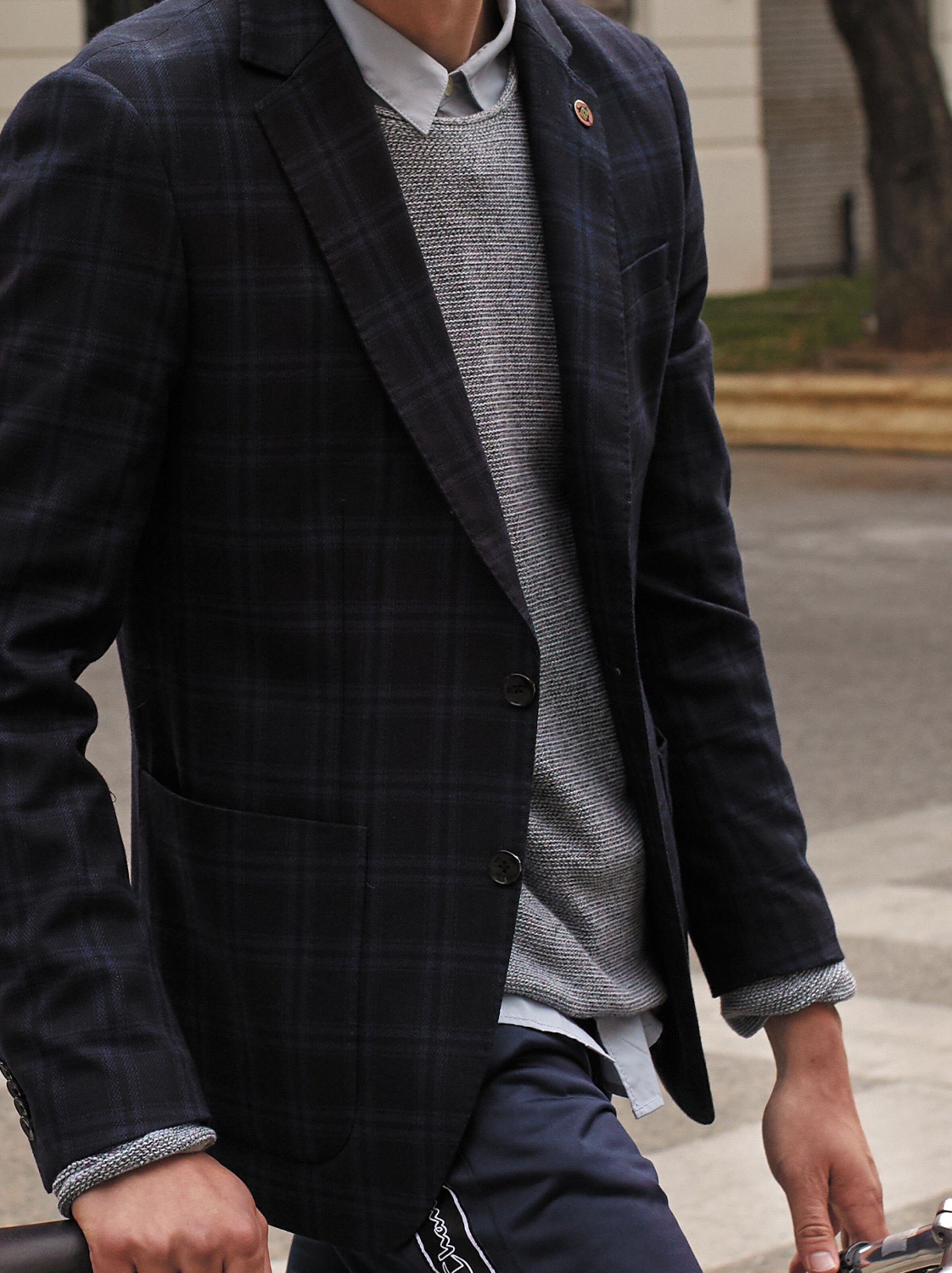 Während der Blazer früher hauptsächlich in schicken Büros zu finden war, ist er heute fester Bestandteil der Streetstyle-Szene. Im Vergleich zum klassischen Office-Outfit wird er jedoch nicht zu faltenfreier Anzugshose und eleganten Schnürschuhen getragen, sondern für den ultimativ lässigen Look zu Pulli, Joggpants und Sneakern kombiniert. Tipp: Ein gut sitzender Blazer ist übrigens der ideale Jacken-Ersatz, solange die Temperaturen noch mild genug sind. Woran Du einen guten Sitz erkennst? Zum einen an der Schulterpartie, deren Naht bündig am Oberarm abschließen sollte, zum anderen am Sitz des Revers, welches glatt über die Brust fallen sollte.