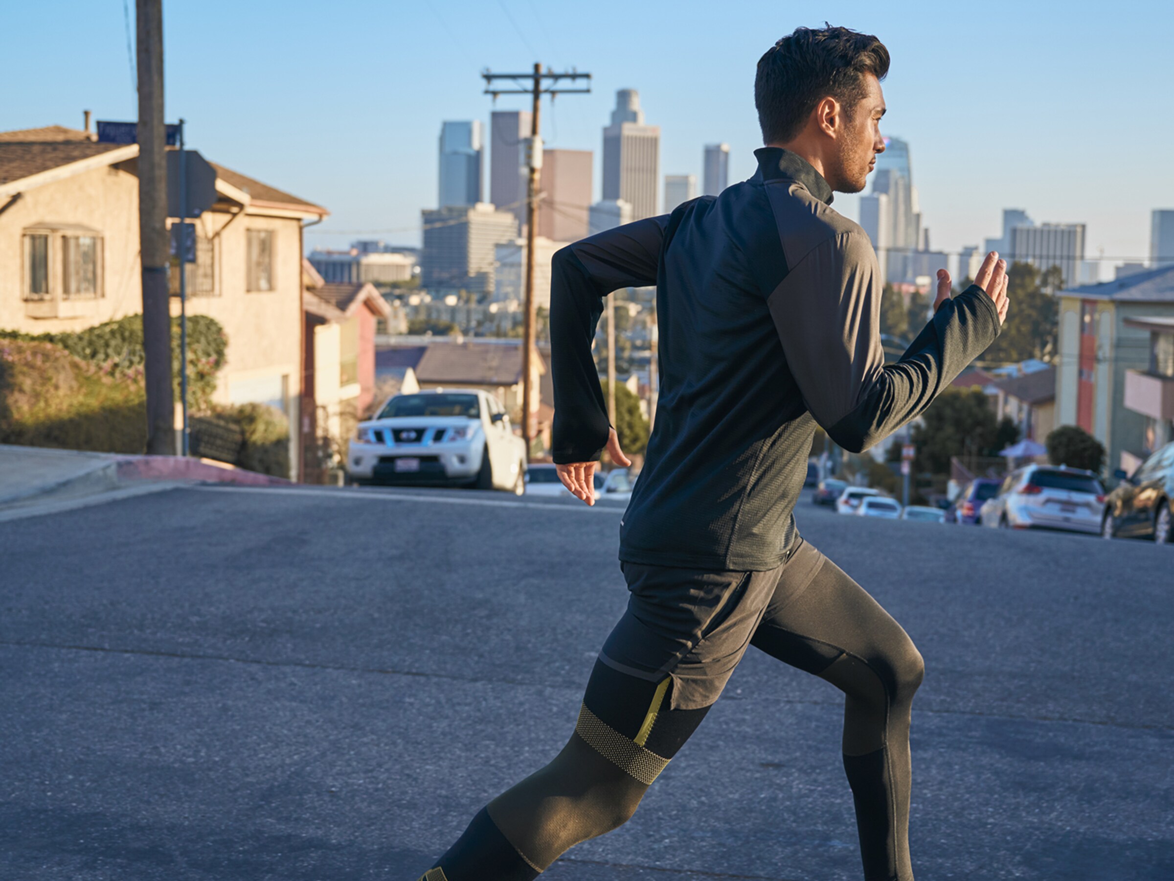 Generelle Faustregel beim Laufen: So anziehen, als wäre es zehn Grad wärmer. Ein Thermo-Langarmshirt und eine wasser- und windabweisende Laufjacke oder Weste sind optimal für den Run bei kalten Tagen.
